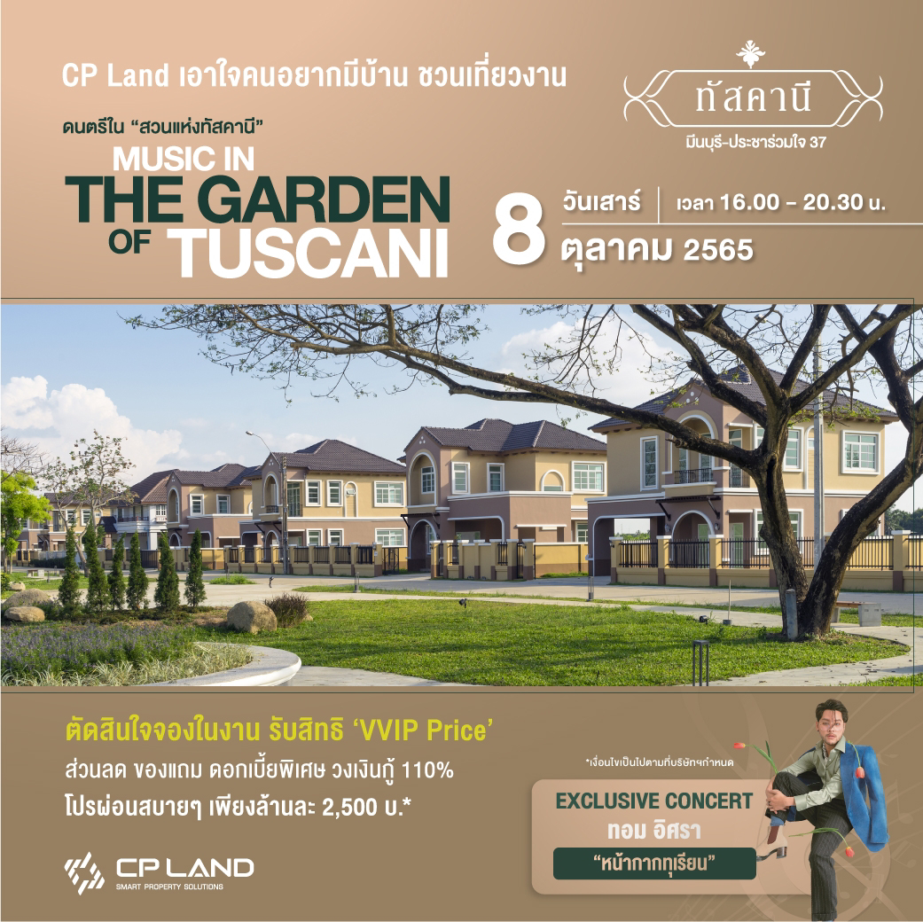 CP Land เอาใจคนอยากมีบ้าน ชวนเที่ยวงานดนตรีใน 'สวนแห่งทัสคานี’ Music in ‘the Garden of Tuscani’ 8 ตุลาคมนี้ จองภายในงานรับส่วนลดสูงสุด 6 แสน iPhone 14 ProMax โปรผ่อนสบายล้านละ 2,500 บาท