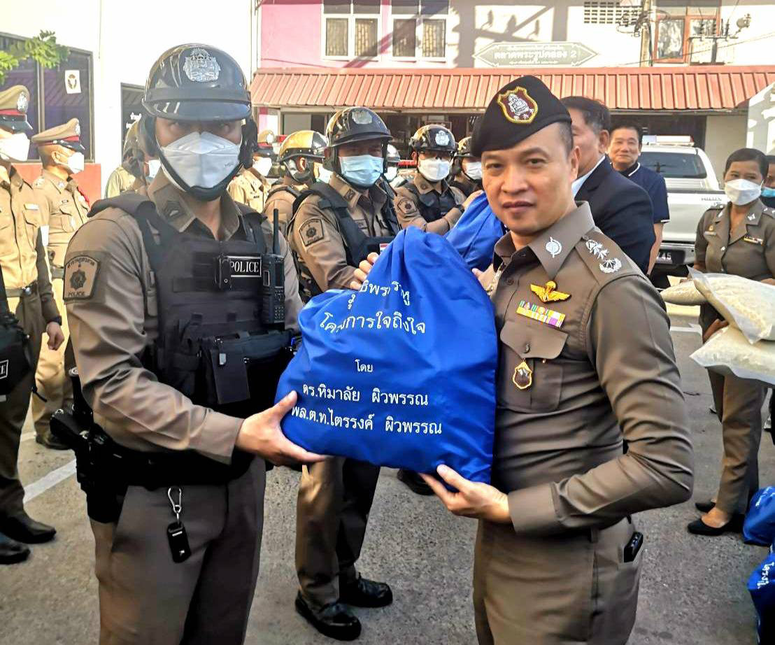 โดยมี พ.ต.อ.อภิชาติ ทองแพ ผกก.สภ. ประตูน้ำจุฬาลงกรณ์ พร้อมด้วย ข้าราชการตำรวจ สภ.ประตูน้ำจุฬาลงกรณ์ รับมอบถุงยังชีพ ครั้งนี้